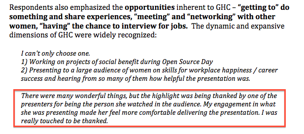 I also just spotted the impact report compiled from the survey’s taken by attendees of The Grace Hopper Celebration of Women in Computing 2011.