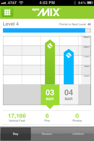 I was in Vail last weekend, not only was the snow great and the weather awesome, I was excited to try out EpicMix. As a geek I love a good app, and I also love a good graph and I definitely love skiing.