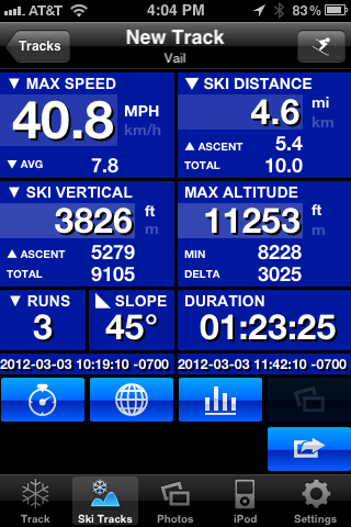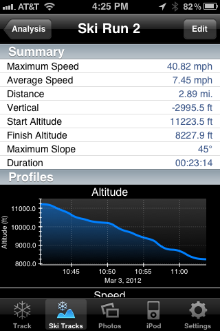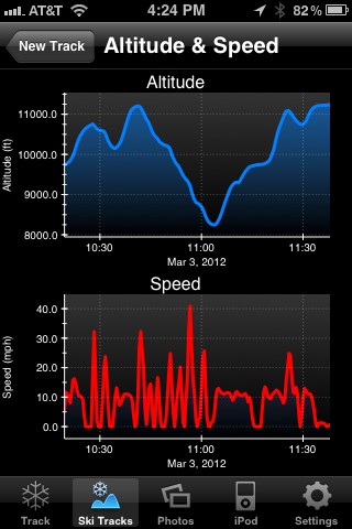 It tracks where you skied on a Google Map and shows you your max speed, altitudes, metres skied etc. You launch the app and it runs in your pocket, it integrates with the iPod too. On my 3Gs it drains the battery pretty bad but I’ve heard from others with newer iPhones that this isn’t the case for them.