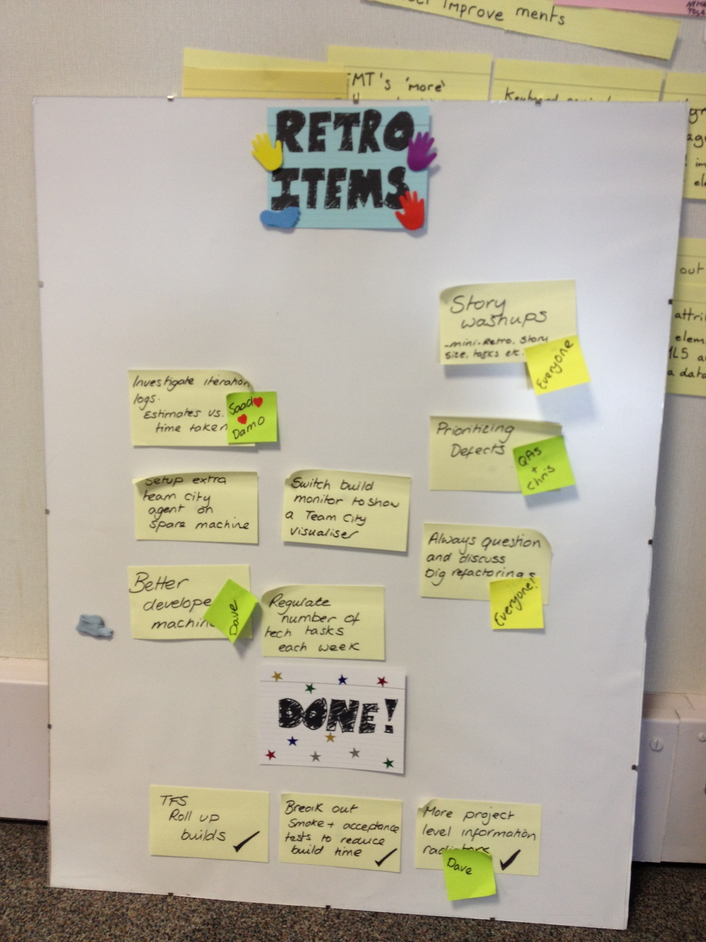 So far this has worked pretty well. I already feel there is a better energy and things are changing as a result of our last retrospective. Next mission, get them to happen much more often!