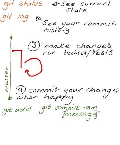 When you are a point where you are happy with your changes and you want to pull in everyone else’s changes… You can commit as many times as you like to one branch but try to keep them small and in a working state.