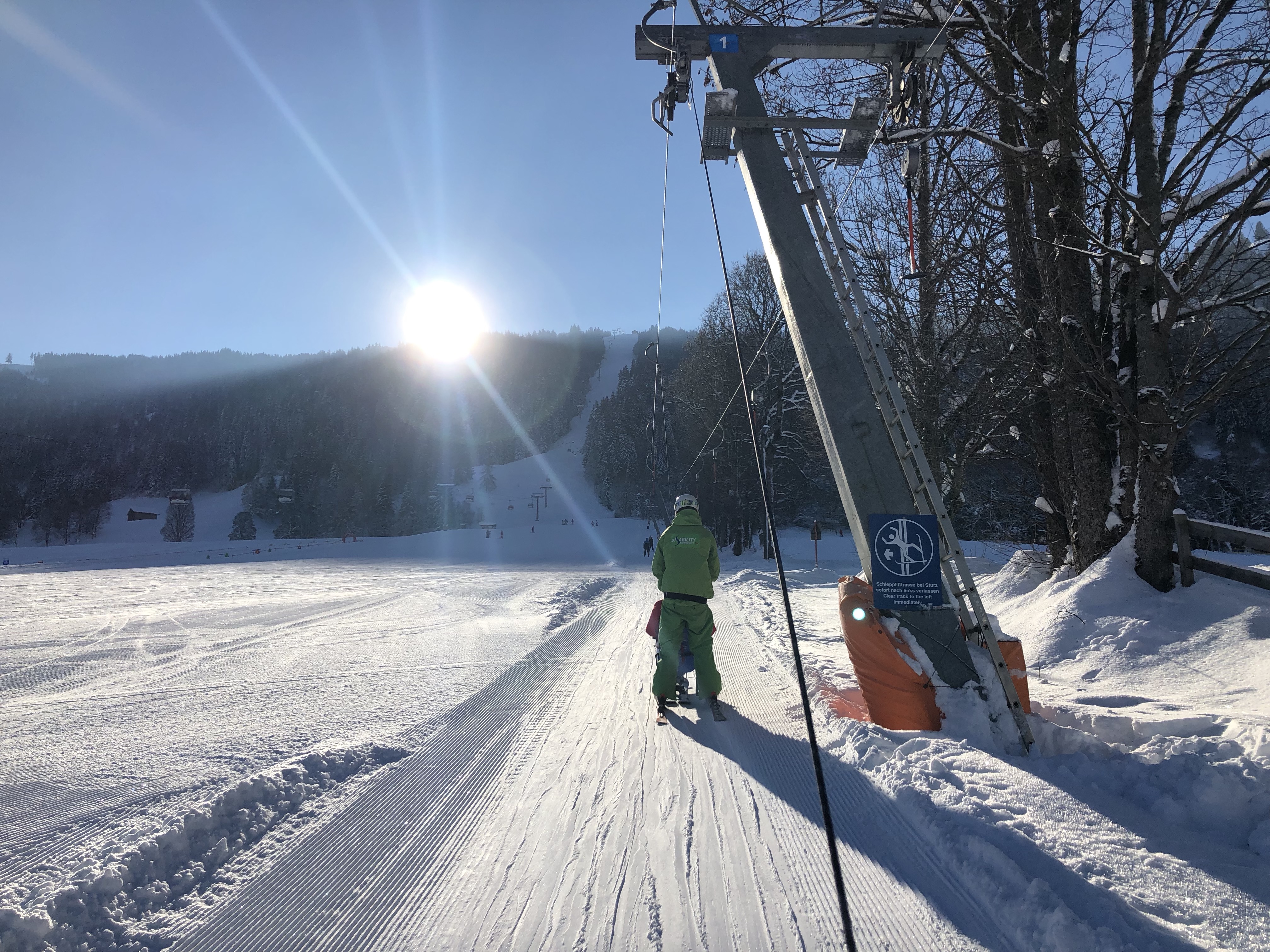 I skied a few days with Bella and her instructor Doug on and off. They kept the VI skiers with the same instructors all week so that they could build up trust and rapport. Bella has actually skied quite a lot, especially when younger but it had been 16 years since her last time on skis. She much preferred being totally independent and not being physically guided, she quickly got back her ski legs. She has a brilliant feel for the snow and the terrain, instinctively knowing when to turn and how sharply given the gradient to slow down. She would pick herself a corridor of 15 meters or so and off she went, doing lots of little turns, testing when to let the skis run and how much room she had, and how much speed she could safely pick up. I was often trailing behind her welling up at how amazing it was to witness. To start with Doug would ski behind her and just shout left or right, but by the end, Doug and I would ski down opposite edges of the run and just shout when Bella got too close to the edge, otherwise, off she skied. Totally amazing. My usual role when it came to the drag lifts was to go up ahead and then give Bella a warning when she was getting to the end and a “1,2,3 let go”. The progression throughout the week was pretty great.